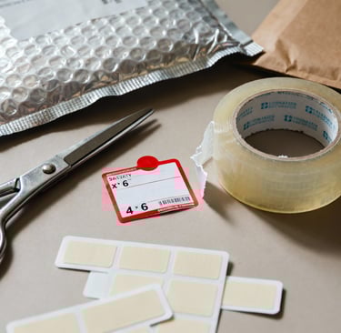 Reinforced medium packages. Bubble mailers are used for larger orders, with labels glued and taped for maximum hold and peace of mind.